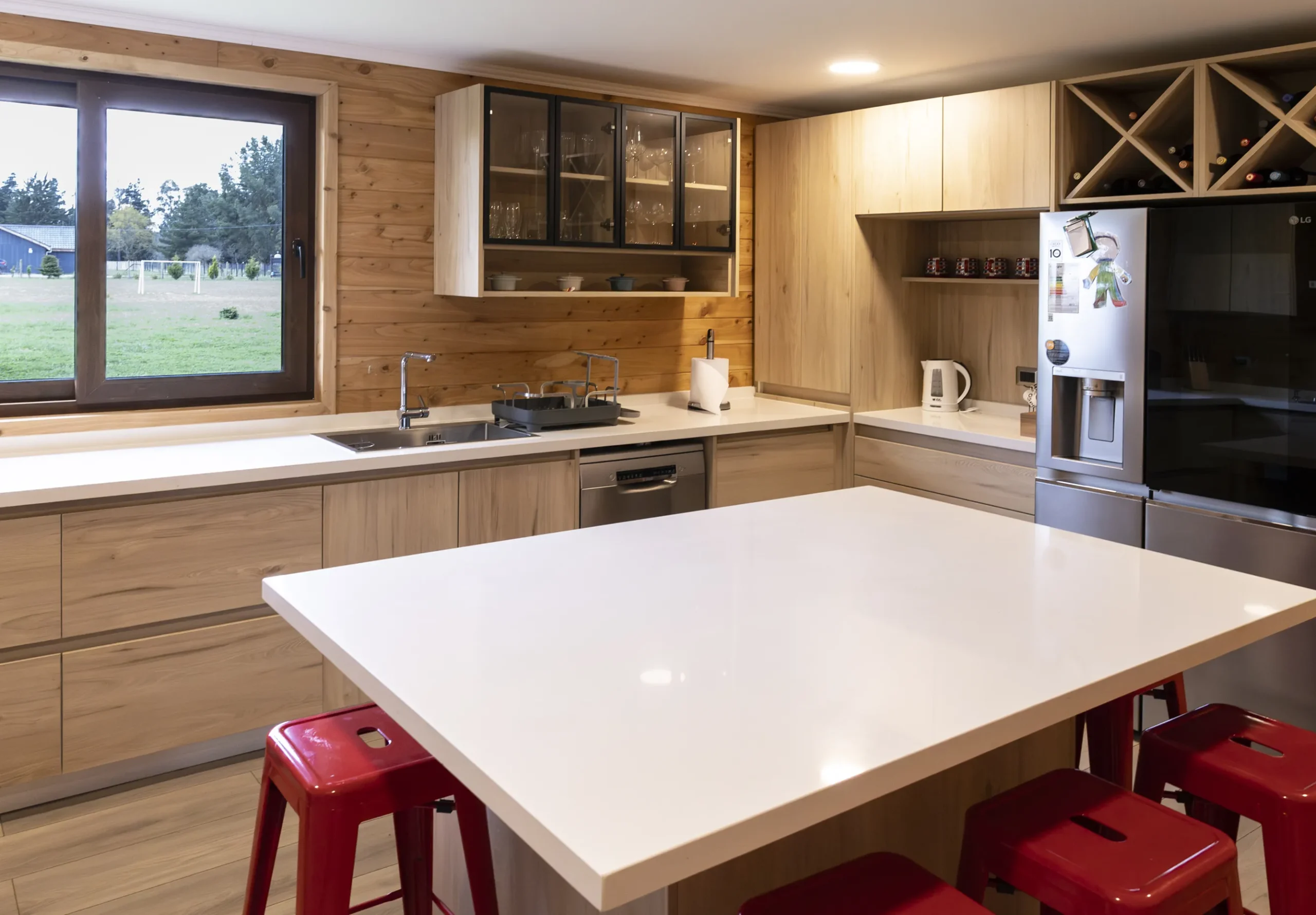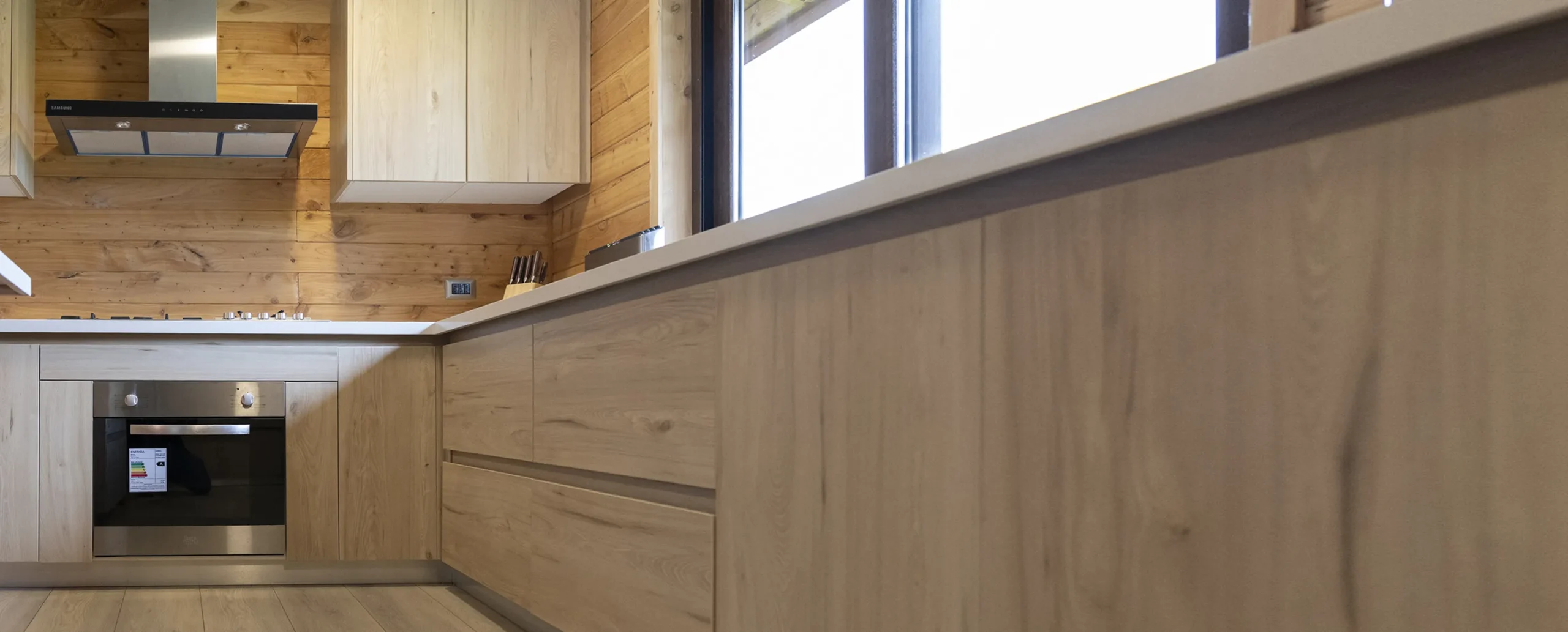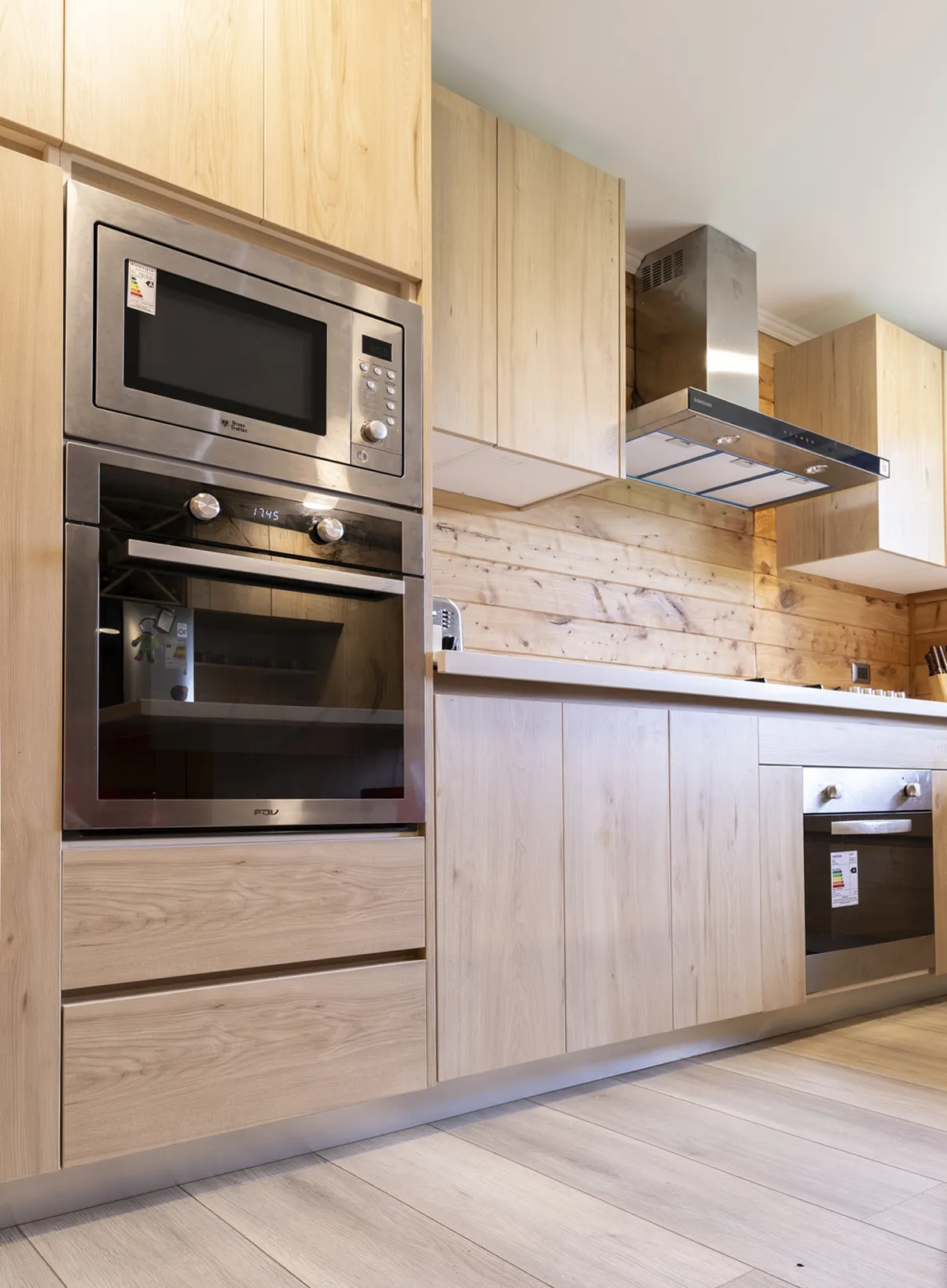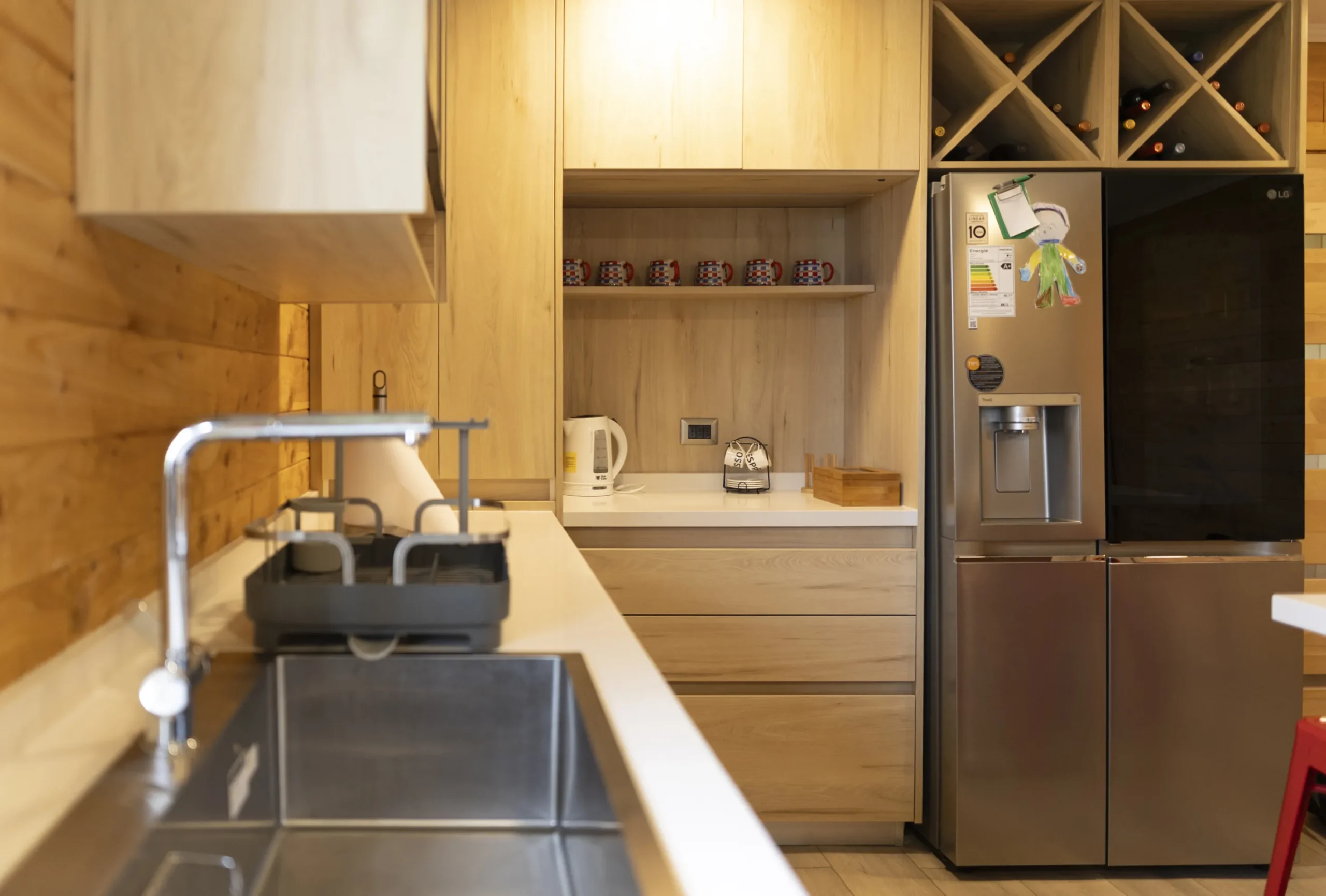 En este espacio, nuestros muebles de cocina en melamina son los verdaderos protagonistas. La melamina está disponible en una amplia gama de colores y patrones, lo que permite una gran flexibilidad en la decoración de la cocina. Además, su versatilidad es incomparable, ya que nunca pasa de moda.