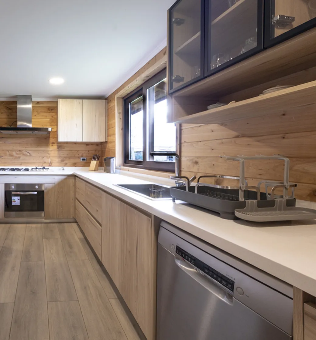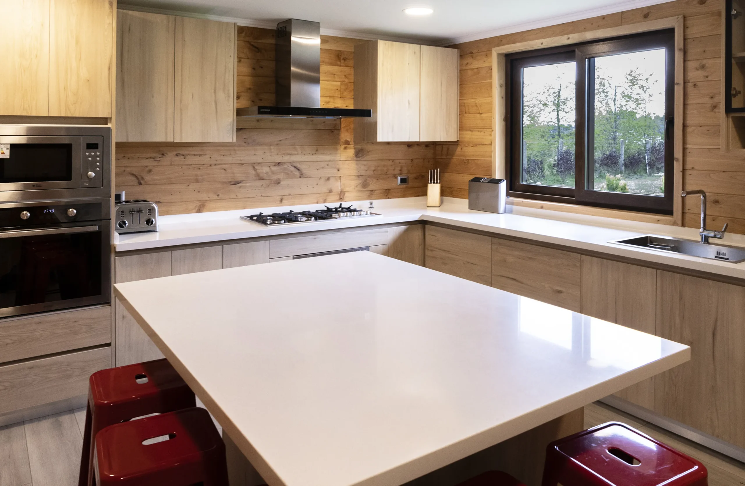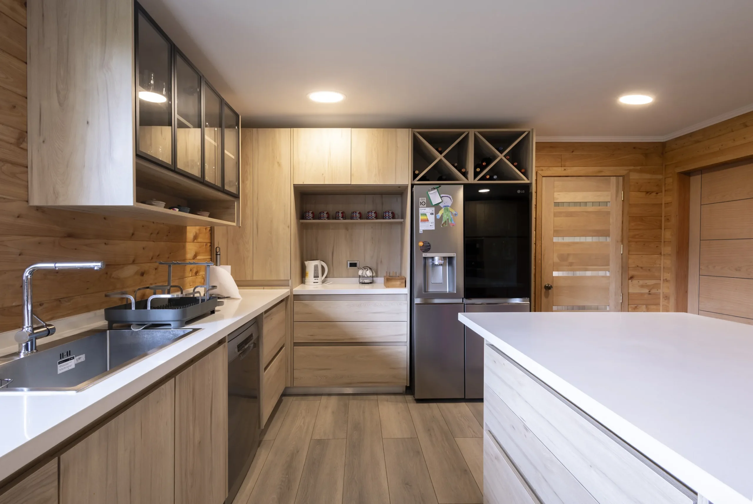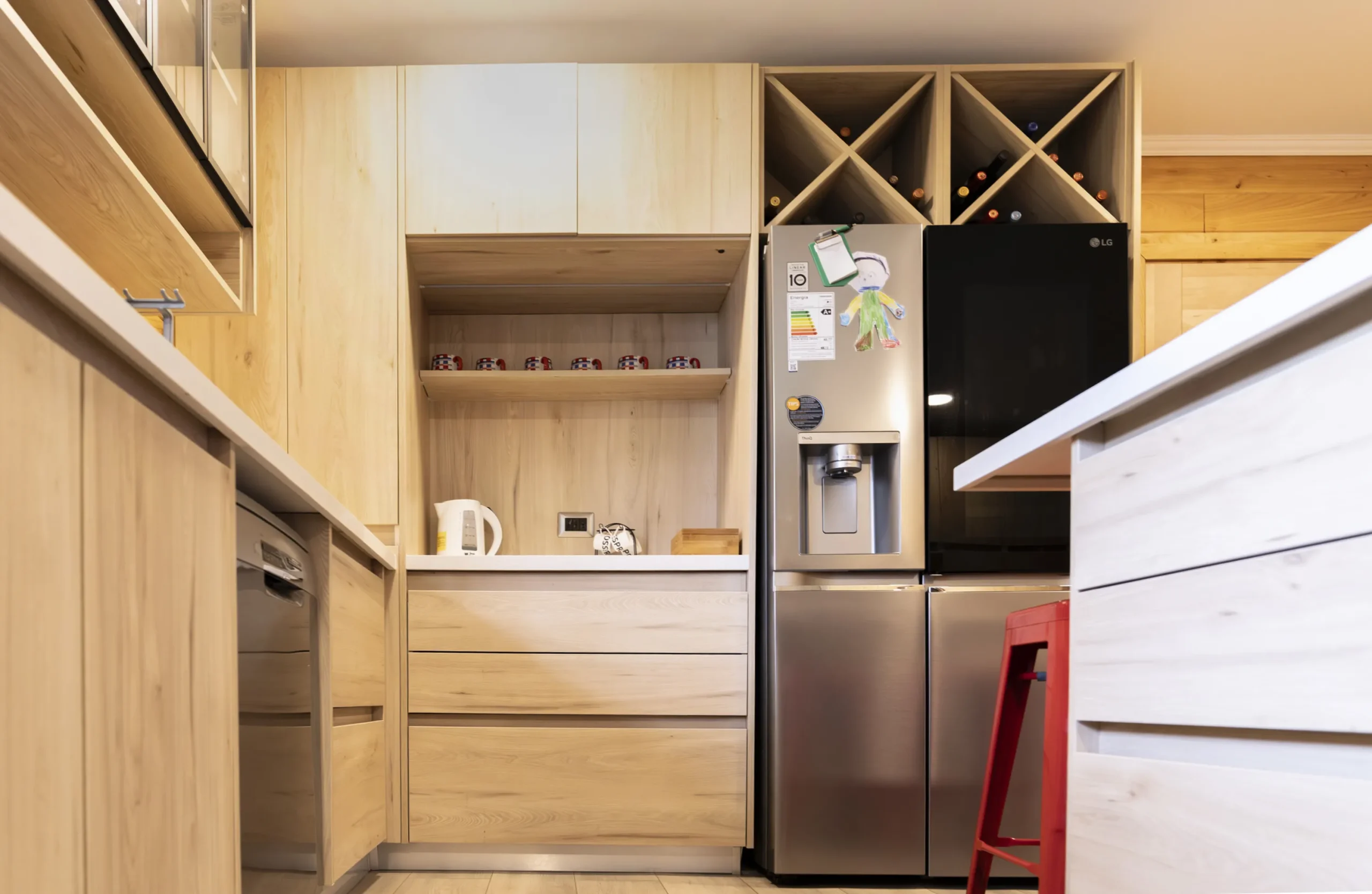 En este espacio, nuestros muebles de cocina en melamina son los verdaderos protagonistas. La melamina está disponible en una amplia gama de colores y patrones, lo que permite una gran flexibilidad en la decoración de la cocina. Además, su versatilidad es incomparable, ya que nunca pasa de moda.